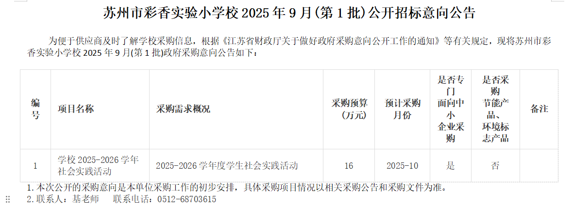 上一条:苏州市彩香实验小学校2025年9月(第2批)公开招标意向公告 下一条:苏州彩香实验小学校关于社会实践活动费、课后服务费、学生伙食费收费公示